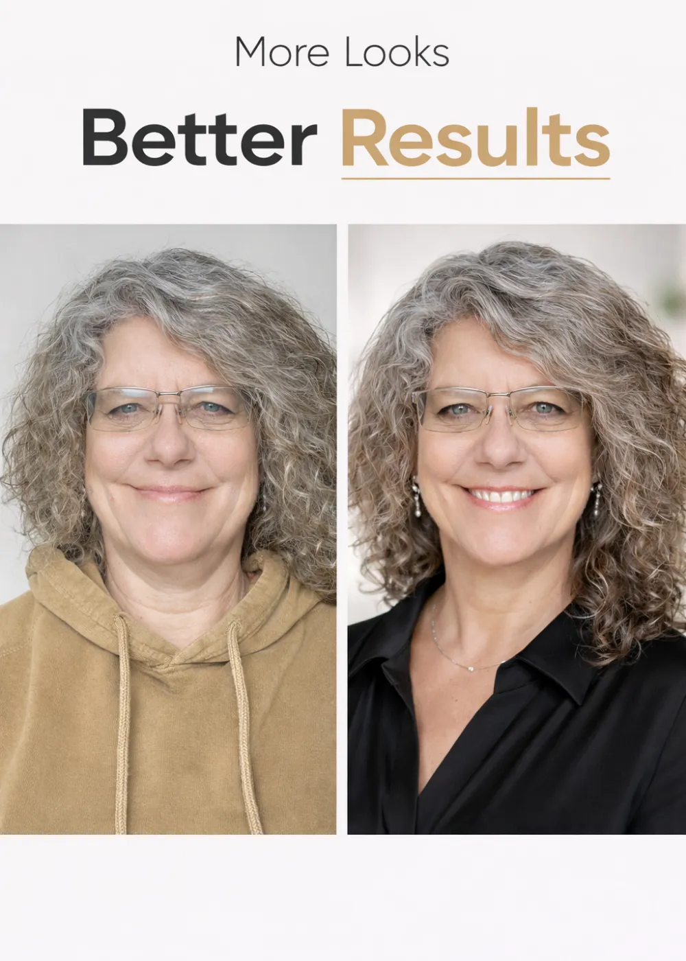 Primary Benefit: Turn a simple selfie into a studio-quality business headshot using AI in minutes. No design skills needed.